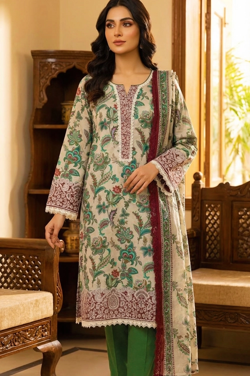 Upgrade your wardrobe with this elegant floral Printed Lawn 2PC Suit for Women designed for modern women who love comfort and style. The beautifully printed shirt paired with a matching trouser creates a graceful everyday look.